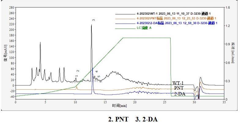 流動相A-甲醇,流動相B-2mmol/L乙酸銨水溶液,梯度洗脫