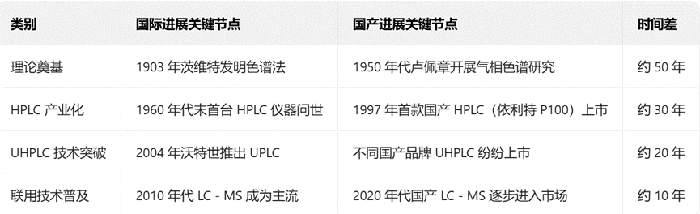 (中國(guó)與國(guó)際液相色譜發(fā)展階段對(duì)照表)