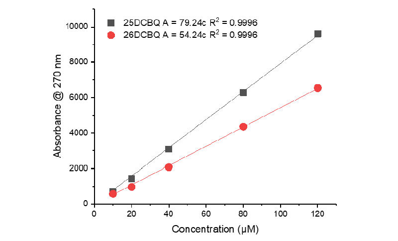 通過依利特EClassical 3100液相色譜儀對(duì)二氯苯醌(DCBQ)的含量進(jìn)行檢測(cè),線性良好,R2為0.9996,經(jīng)過計(jì)算,二氯苯醌(DCBQ)的含量在使用親核試劑后明顯下降,清除率明顯提高。