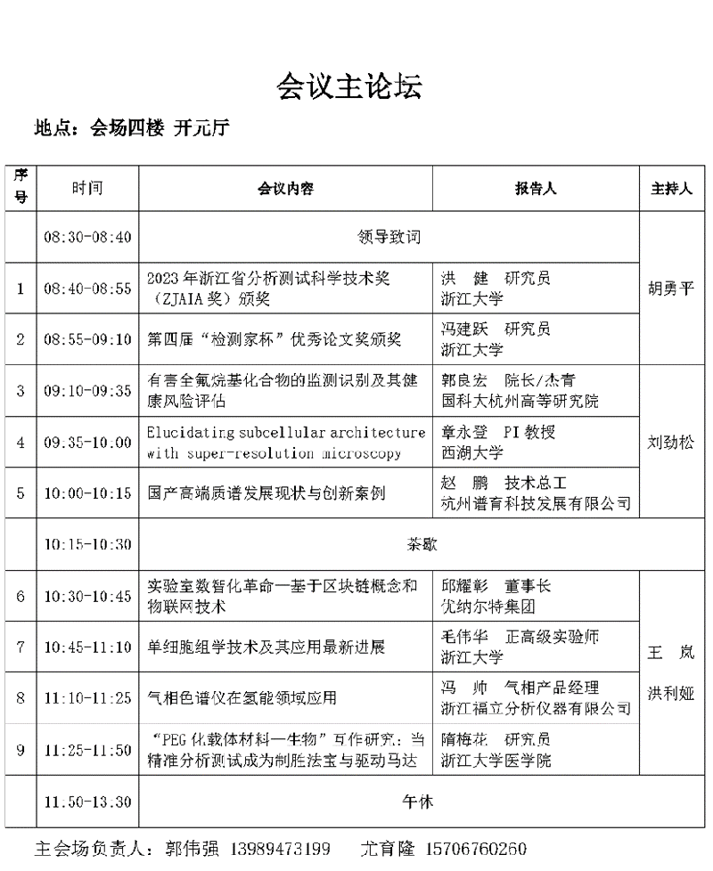 本次會(huì)議為期一天,上午設(shè)主會(huì)場(chǎng),邀請(qǐng)了省內(nèi)外知名專家學(xué)者作大會(huì)報(bào)告;下午設(shè)7個(gè)分會(huì)場(chǎng):色譜與質(zhì)譜分析、光譜與電化學(xué)分析、電鏡與微結(jié)構(gòu)分析、細(xì)胞生物與生化分析、生物大分子分析、核磁共振波譜分析以及檢驗(yàn)檢測(cè)機(jī)構(gòu)等專業(yè)領(lǐng)域的專家學(xué)者及青年學(xué)者作分會(huì)場(chǎng)專題報(bào)告。會(huì)議還設(shè)有國(guó)內(nèi)外廠商分析測(cè)試儀器及相關(guān)設(shè)備展區(qū)。