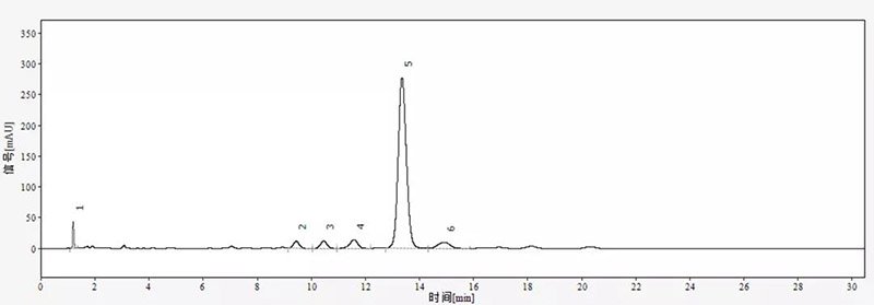 甲氨基阿維菌素苯甲酸鹽是在甲氨基阿維菌素的基礎上合成的高效生物藥劑,它具有高效、低毒、無殘留、無公害等生物農藥的特點,即擴大了殺蟲譜,但又降低了對人畜的毒性。依利特使用EClassical 3200高效液相色譜儀匹配新款的SinoPak BEH T-C18色譜柱,對甲氨基阿維菌素進行分析檢測。