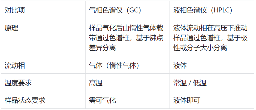 兩者在一些基本要素上是相通的,像保留值、塔板數(shù)、塔板高度、分離度、選擇性等;基礎(chǔ)理論方面,塔板理論與速率方程也大致相同。不過,氣相色譜儀用氣體作為流動相,液相色譜儀則用液體作為流動相,而液體和氣體的特性存在差異,再加上兩者使用的實驗儀器和操作條件也不一樣,所以它們之間存在不少區(qū)別,主要體現(xiàn)在以下幾個方面: