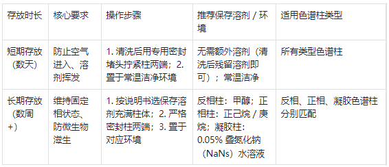 表 2.不同時(shí)長的色譜柱存放方法對比