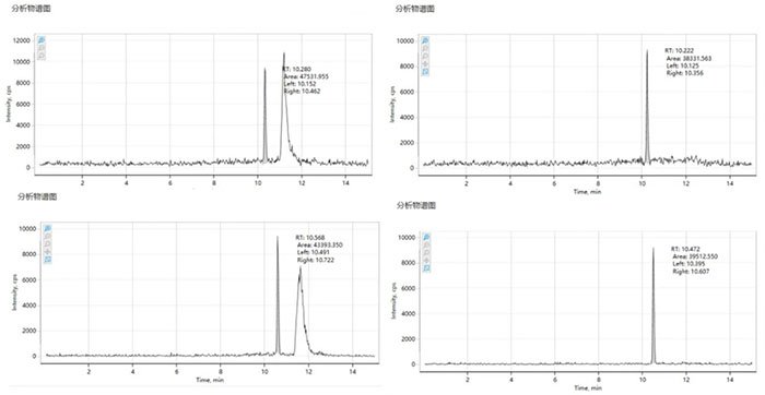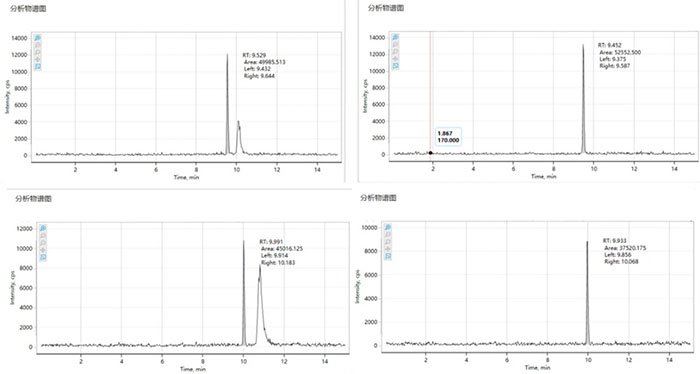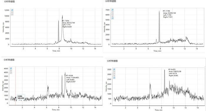 1.烷基酚檢測:基線變得平穩(wěn)干凈,0.04 ppb(客戶要求的下限)低濃度點清晰可辨,所有化合物均穩(wěn)定檢出。