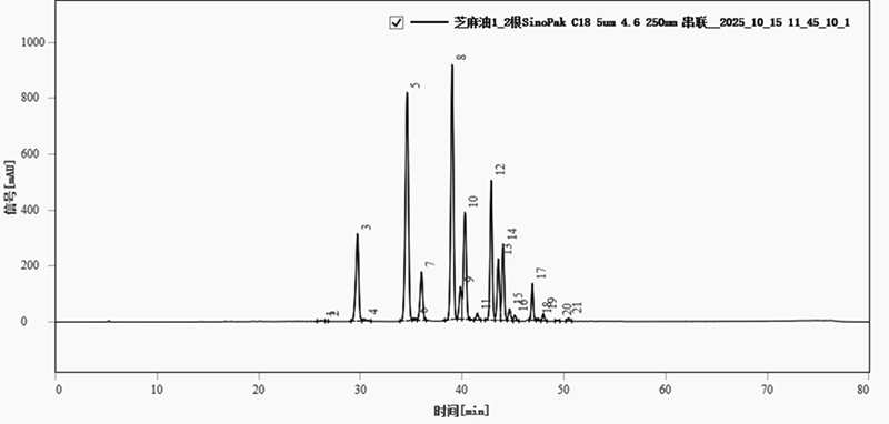 芝麻油作為一種常見的食用植物油和藥物輔料,其質(zhì)量和成分分析尤為重要。甘油三酯是芝麻油的主要成分,其組成直接影響油的營養(yǎng)價值、穩(wěn)定性和應(yīng)用性能。本文將介紹如何使用高效液相色譜法結(jié)合蒸發(fā)光散射檢測器(HPLC-ELSD)對芝麻油中的甘油三酯進行分析,并對比國家標準GB/T 44614-2024《糧油檢驗,植物油中甘油三酯組成的測定,高效液相色譜法》與2025版《中國藥典》中芝麻油標準的分析方法。