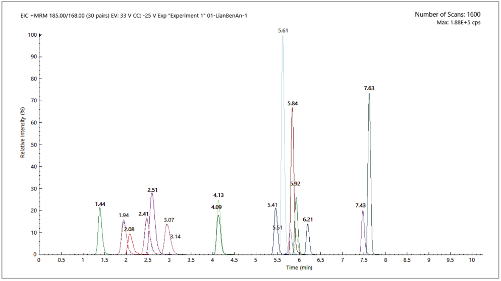 目前,我國生態(tài)環(huán)境部發(fā)布標準 HJ1210-2021《土壤和沉積物 13 種苯胺類和 2 種聯(lián)苯胺類化合物的測定 液相色譜 - 三重四極桿質(zhì)譜法》,為環(huán)境介質(zhì)中土壤和沉積物中苯胺類和聯(lián)苯胺類化合物的測定提供技術(shù)保障和法規(guī)依據(jù)。本文針對該標準,依利特科技采用 EClassical 3200L-MS2 Vertical 9100 液質(zhì)聯(lián)用系統(tǒng),成功建立了土壤和沉積物中 15 種苯胺類和聯(lián)苯胺類化合物的分析方案,根據(jù)保留時間及離子比率進行快速準確定性,其檢出限完全滿足標準中的檢測限量要求,輕松應(yīng)對日常檢測分析要求。