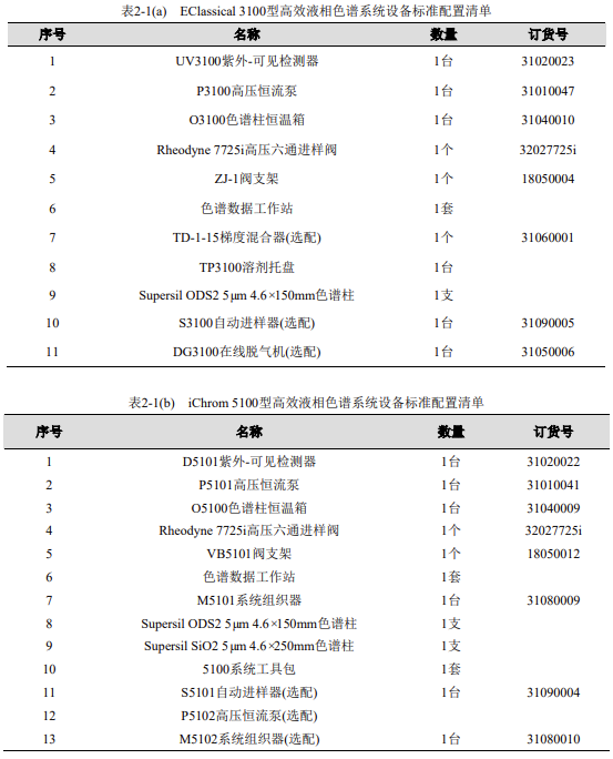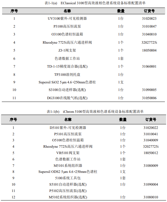 表 1-1 (a) EClassical 3100 型高效液相色譜系統(tǒng)設備標準配置清單