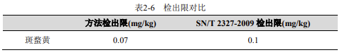通過上述色譜數(shù)據(jù)及線性方程計算,某品牌雞蛋中斑蝥黃含量為 2.4 mg/kg。