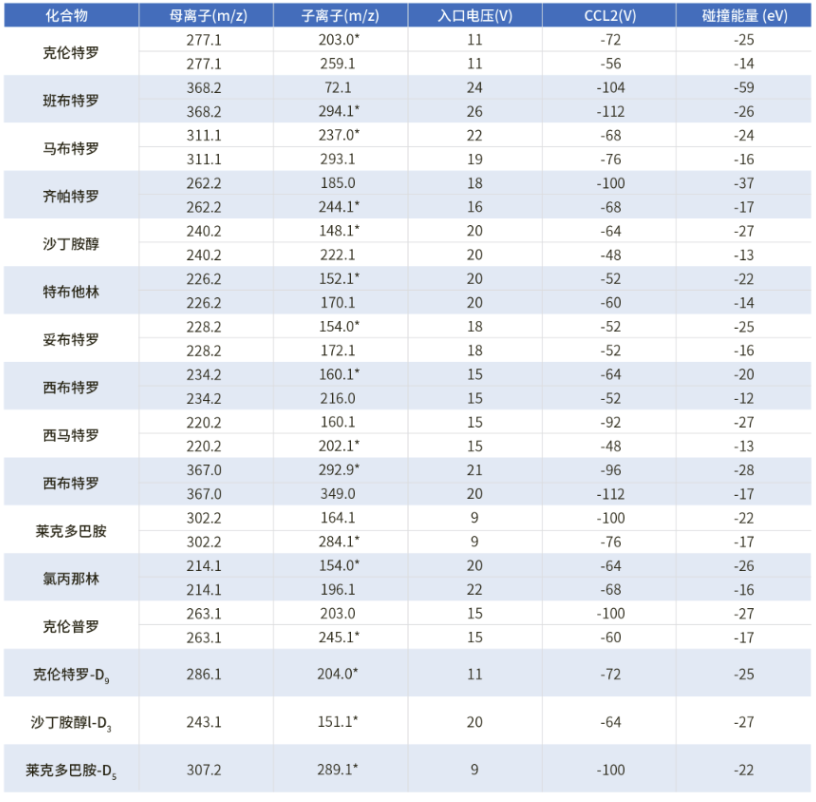 [1. 前處理方法參考 GB/T22286-2008《動(dòng)物源性食品中多種 β- 受體激動(dòng)劑殘留量的測定 液相色譜串聯(lián)質(zhì)譜法》。