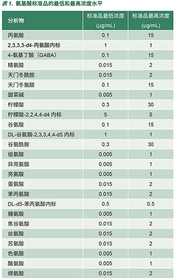 乙腈、甲酸、氨基酸標準品、氘化氨基酸標準品(內(nèi)標)、去離子水(由 Triple Red 水純化儀制備)