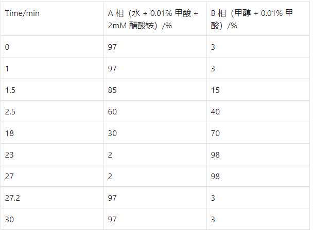 色譜柱:Brownlee SPP C18 100×2.1mm,2.7μm(貨號:N9308404)?