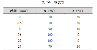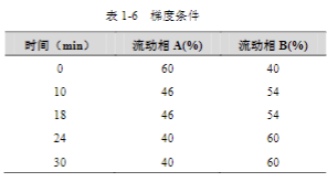 流動(dòng)相:A: 水,B: 乙腈,梯度洗脫