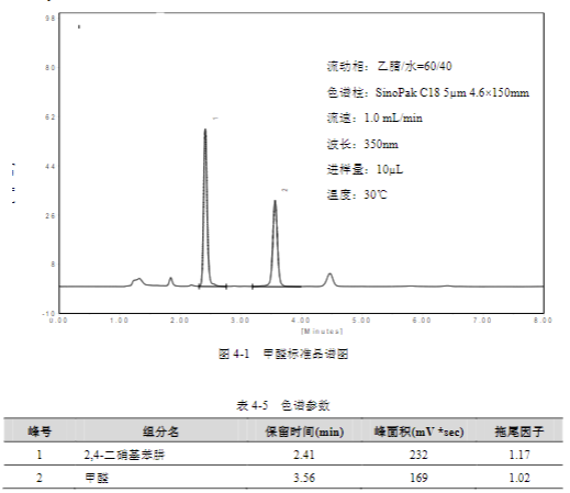 按照 4.3 中實(shí)驗(yàn)方法,對(duì)甲醛標(biāo)準(zhǔn)溶液進(jìn)行測(cè)定,結(jié)果如下: