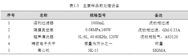 實驗過程中其它玻璃器皿還包括容量瓶 (100mL、50mL、25mL、10mL)、移液槍 (0~1000μL,0~5000μL)、移液槍槍頭 (1mL,5mL)、一次性 PVC 手套、一次性口罩、進樣針、濾膜等若干。