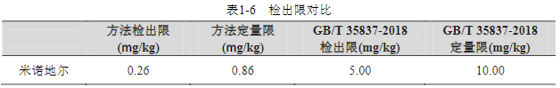 從以上結(jié)果可知,本系統(tǒng)的米諾地爾檢測的靈敏度明顯低于國標(biāo)中的要求,即符合檢測要求。