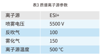 MS2 Vertical 9100,目標化合物質(zhì)譜參數(shù)見表 2 和表 3。