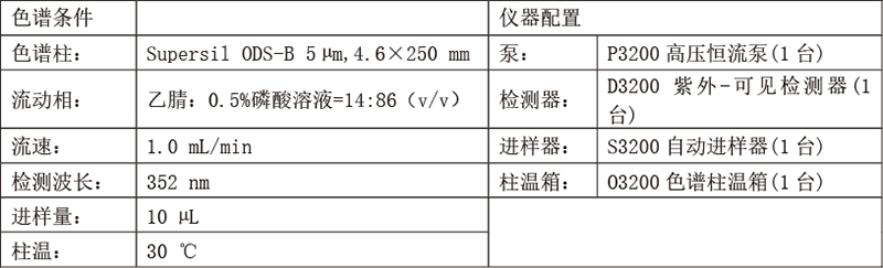 利特新款的EClassical 3200液相色譜儀搭配經(jīng)典的Supersil ODS-B色譜柱,對萹蓄樣品進(jìn)行分析,峰型較好,分離度較好,滿足定性定量分析的需求。