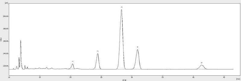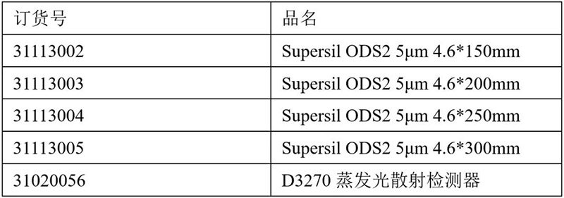 銀杏葉為銀杏科植物銀杏的葉片,含有大量的銀杏黃酮和萜類內(nèi)脂,是一種具有很高藥用價值的植物。銀杏葉具有斂肺,平喘,活血化瘀,止痛的功效。銀杏葉中的萜類內(nèi)酯對血小板活化因子(PAF)受體有強大的特異性抑制作用,被認為是有臨床應用前景的天然PAF受體拮抗劑。依利特用新推出的D3270蒸發(fā)光散射檢測器匹配熱銷的Supersil ODS2色譜柱,對銀杏葉中萜類內(nèi)酯的含量進行分析檢測。
