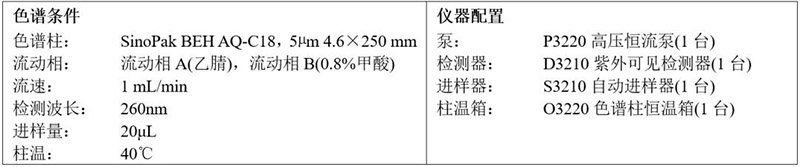 由此可見,使用依利特EClassical 3200高效液相色譜儀以及SinoPak BEH AQ-C18色譜柱,測(cè)得的燙骨碎補(bǔ)配方顆粒的特征圖譜滿足藥典要求。