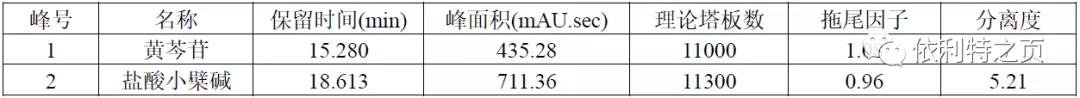 理論板數(shù)按鹽酸小檗堿峰計算應不低于5000。