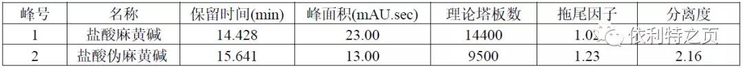 理論板數(shù)按鹽酸麻黃堿峰計(jì)算應(yīng)不低于5000。